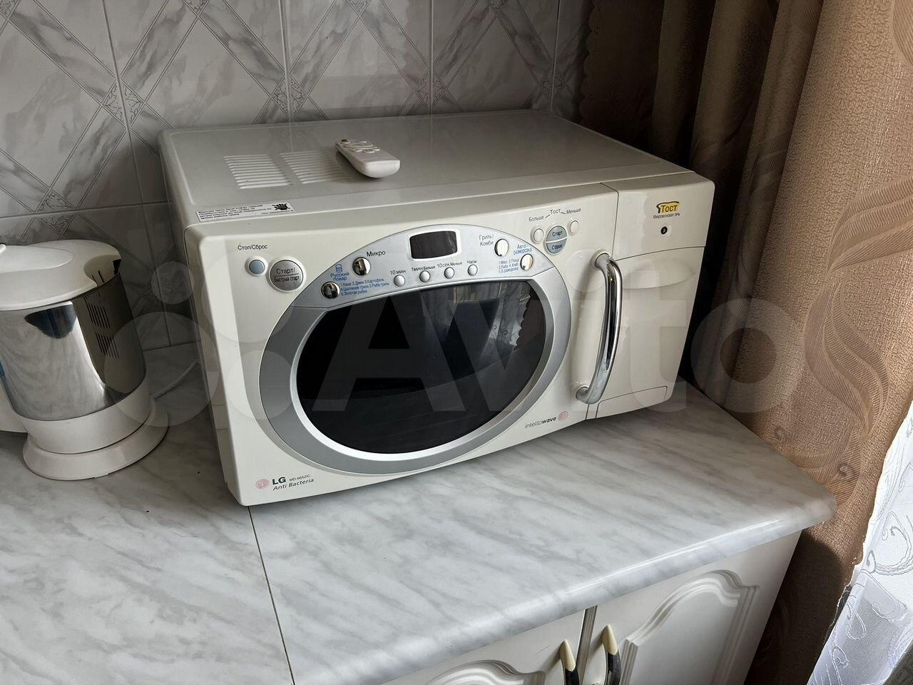 холодильник, плита, микроволновка, стиральная машина, телевизор.