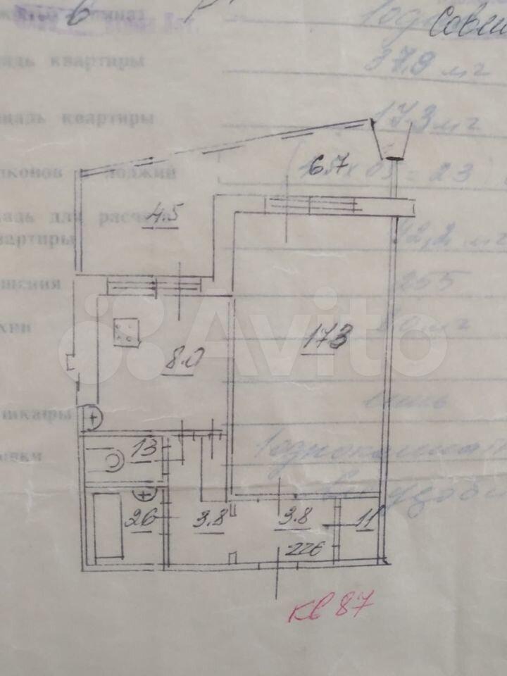 Комната 17кв.м, кухня - 9кв. м. Квартира имеет лоджию и балкон.