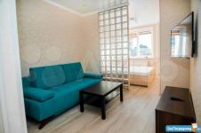 В зале новый 2-х спальный диван, 2-х спальная кровать (по желанию можно оставить, можно убрать, на фото нет), журнальный стол, телевизор смарт, интернет, кондиционер.