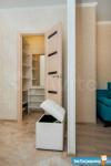 В коридоре встроена гардеробная для хранения одежды, постельного белья, гладильной доски, пылесоса, всего, что занимает свободное пространство комнаты. Отдельно встроен шкаф для верхней одежды и большого количества обуви, наверху антресоль для хранения.