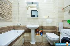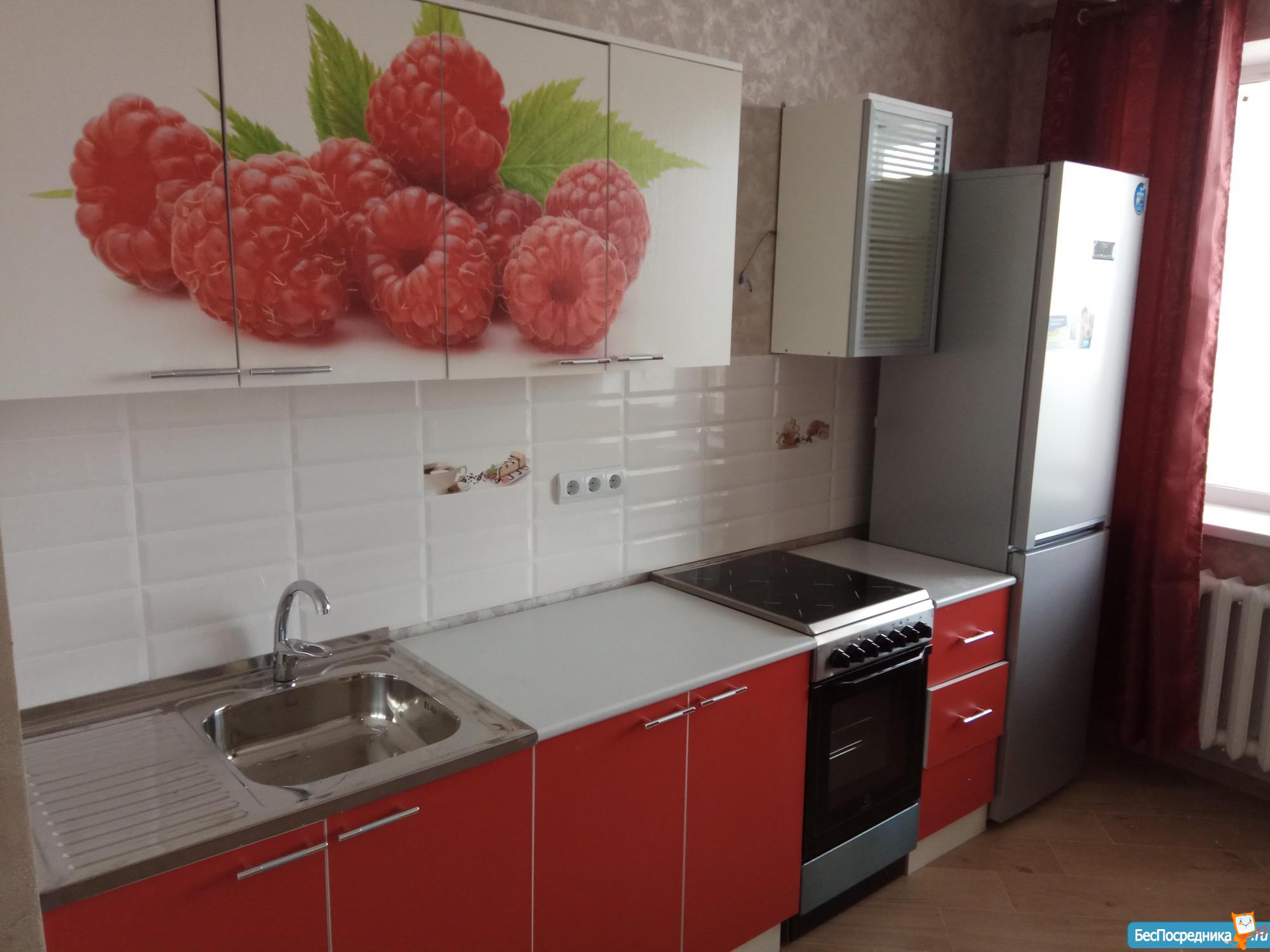 На кухне - кухонный гарнитур, холодильник, плита, чайник, микроволновая печь, вытяжка, все необходимое.