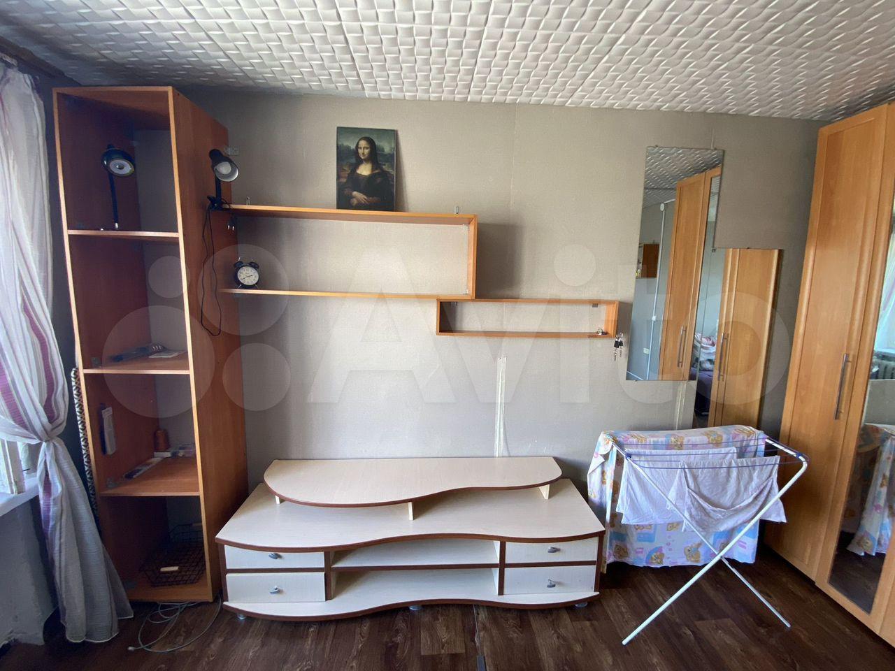 Есть диван(раскладывается в полноценное спальное место), вместительный шкаф, холодильник, посуда, сушилка, доска для глажки, телевизор(рабочий), стиральную машину привезу. Если что-то не нужно, то увезу, договоримся.