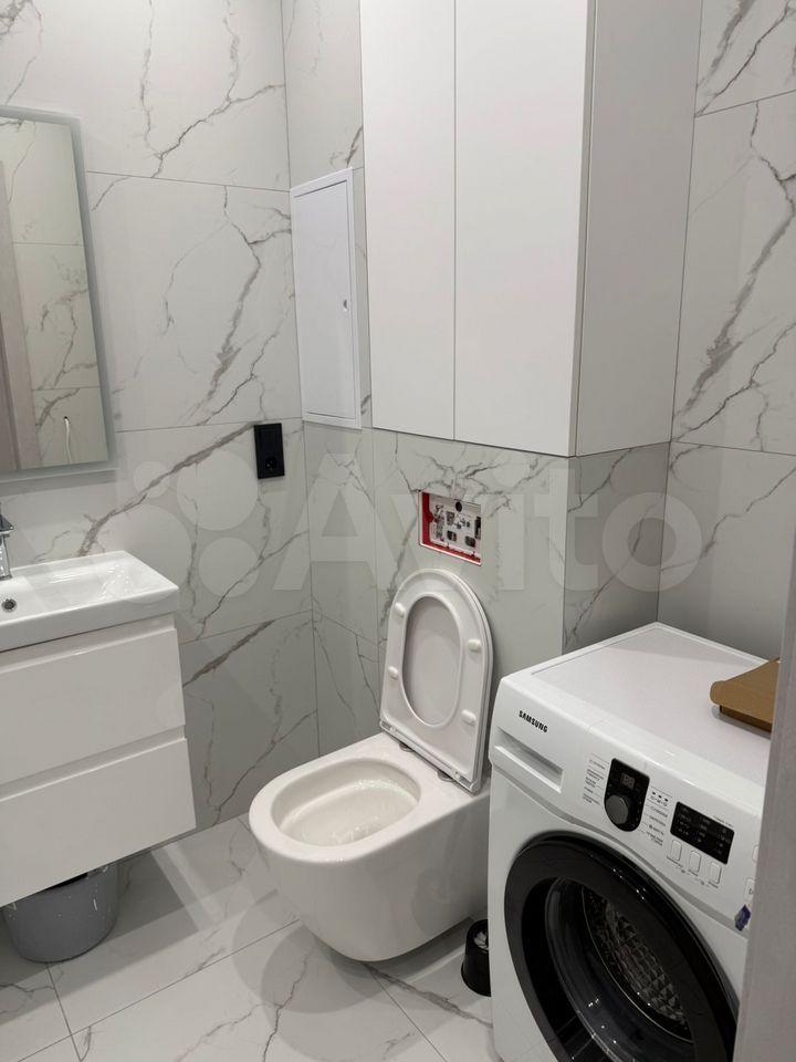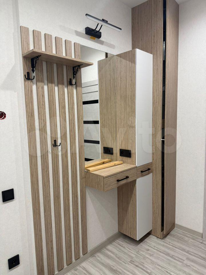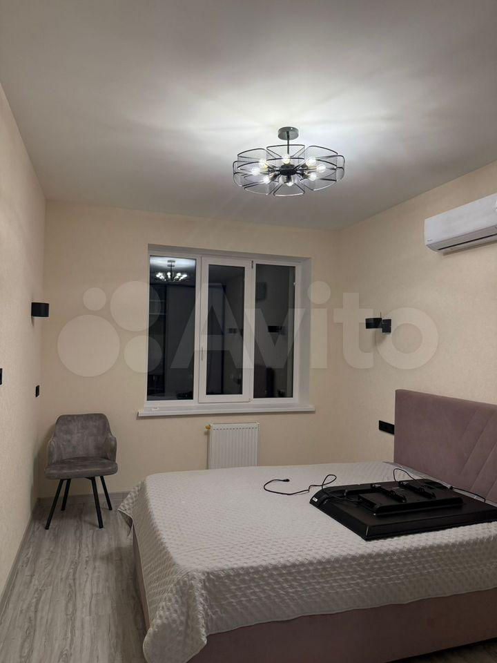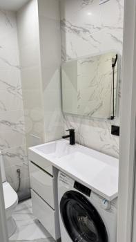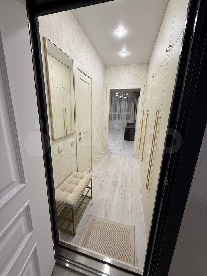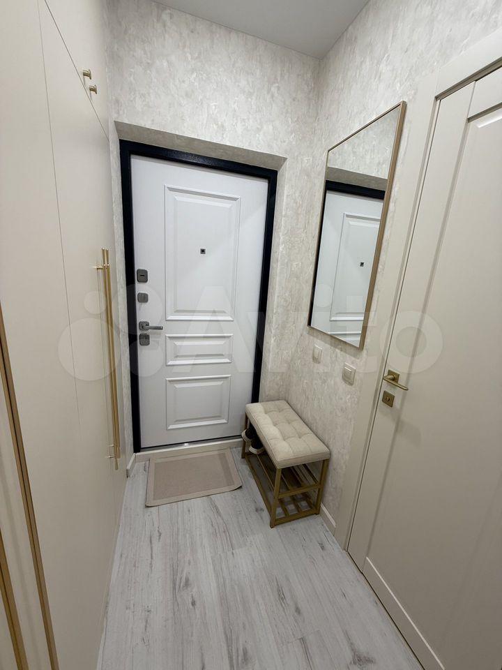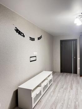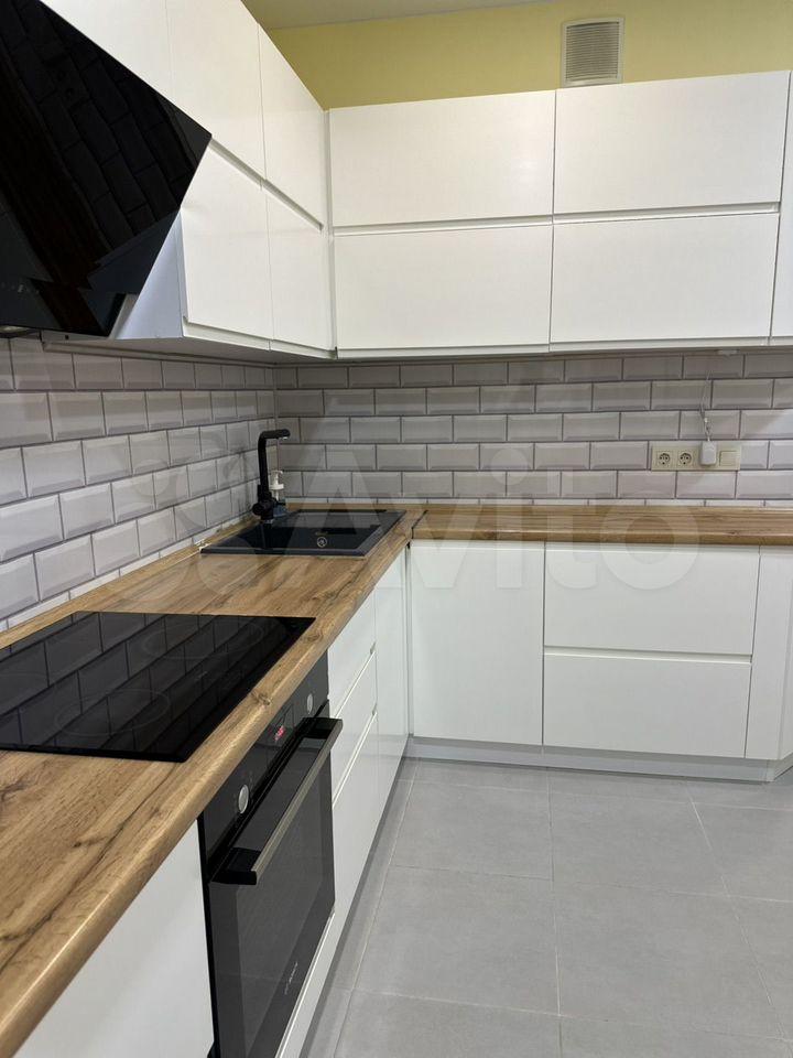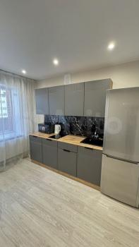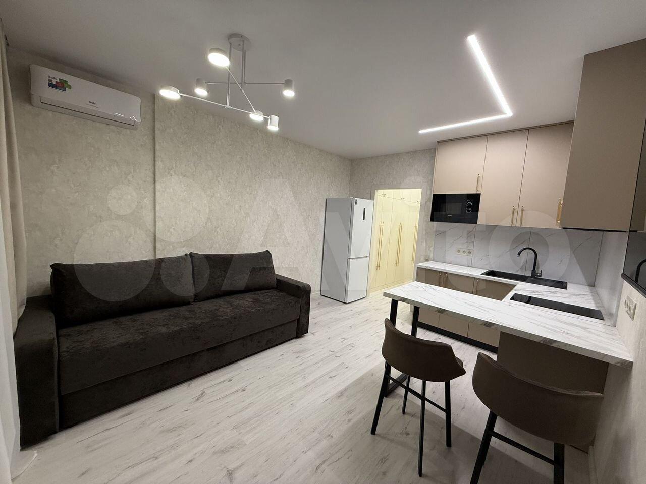 Kваpтирa полностью меблирована и готова к проживанию. В комнате и на кухне установлена новая мебель: большой шкаф-гардероб, диван, кровать, ТВ-зона. На кухне установлен новый кухонный гарнитур со встроенной техникой Krona: посудомоечная машина, духовой шкаф, индукционная варочная панель, вытяжка. Вся техника новая и на гарантии. В квартире также есть холодильник, стиральная машина, стол, стулья. По запросу привезём микроволновую печь, чайник, телевизор.