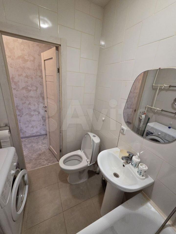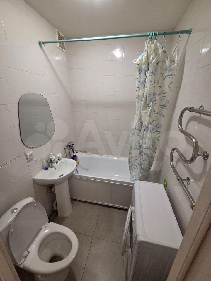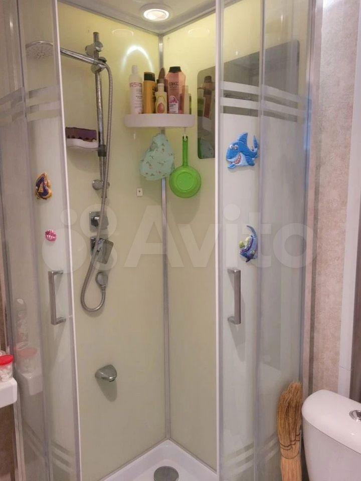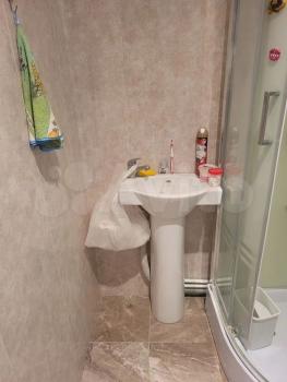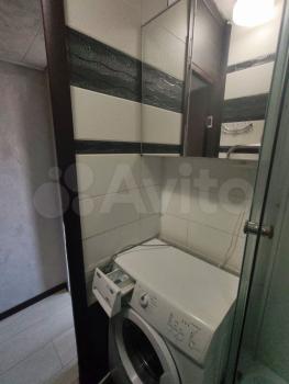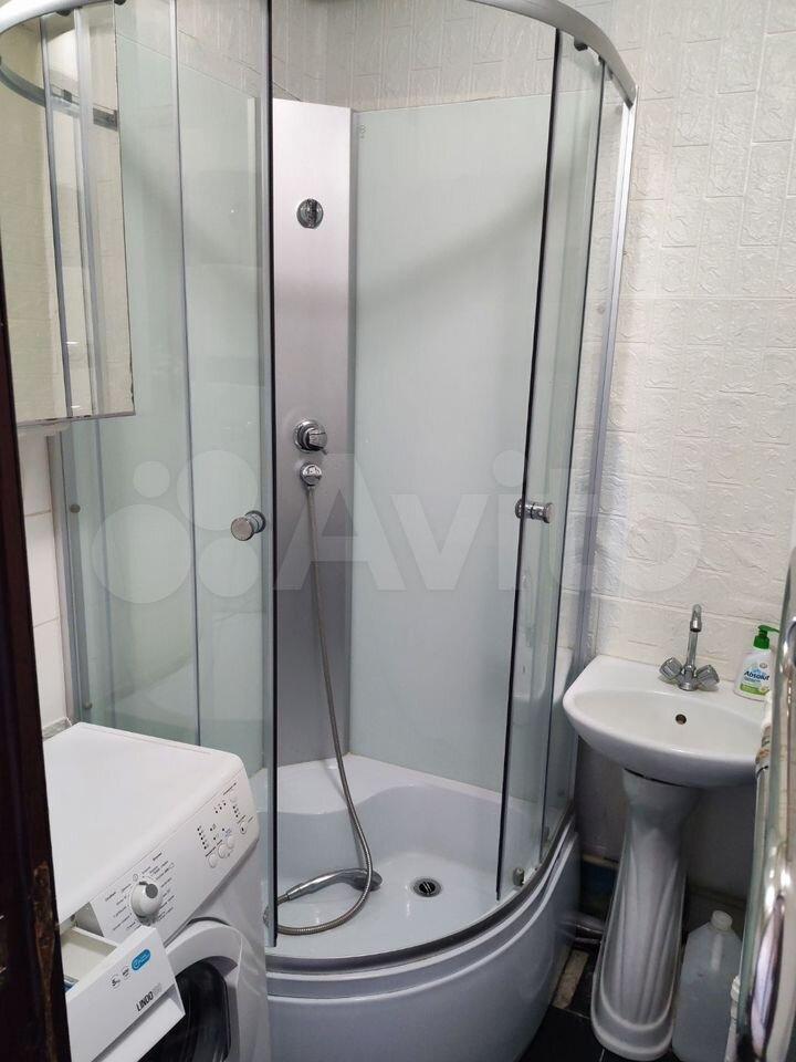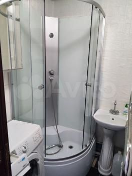 Ванная комната оснащена душевой кабиной и стиральной машиной. В квартире есть утепленный балкон, откуда открывается приятный вид на двор.