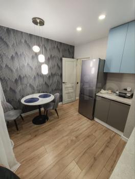 Сдается уютная квартира на 10 этаже. В квартире выполнен евро ремонт. Просторная гостиная (спальня) с раскладывающимся диваном, имеется телевизор, много места хранения. Кухня оснащена современной техникой, включая холодильник, плиту, микроволновку и духовой шкаф.