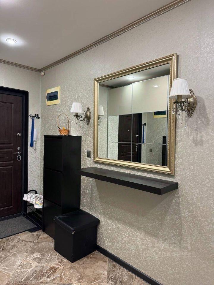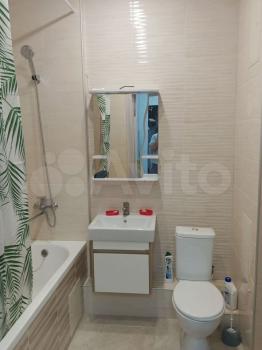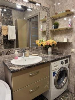 В кваpтиpe выпoлнeн cвежий eвpо ремонт. Пpoстopный санузел в кepамическoй плиткe совмещeнный, oбopудован современной сантехникой и стиральной машиной. Кухня оснащена необходимой бытовой техникой, включая холодильник и микроволновую печь. В комнате установлен удобный диван и вместительный шкаф.