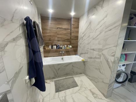 Лоджия застеклена, витражные окна, установлен теплый пол. В квартире имеется гардеробная комната и полностью оборудованный санузел с ванной.