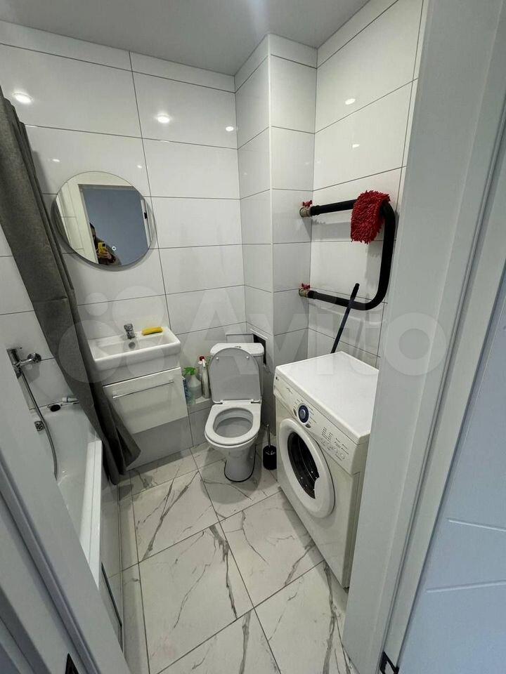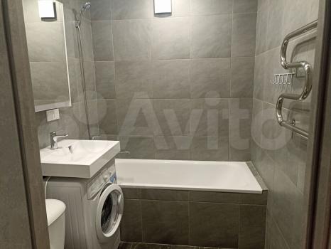 Санузел совмещенный полностью, в плитке, ванна стиральная машина, сантехника, качественные двери, ровные стены, светлый пол