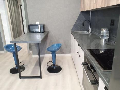 В комнате установлена современная мебель: удобная кровать,диван, вместительный шкаф и телевизор. Кухня оборудована всем необходимым: холодильник, микроволновая печь и стильная обеденная зона. Ванная комната выполнена в светлых тонах с качественной сантехникой и стиральной машиной.