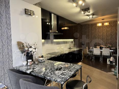 3х комнатная квартира максимальная вместимость 6 человек , есть вся необходимая техника, посуда, мебель. Дом очень теплый. Кухня со столешницей из натурального камня, потрясающий вид, оборудованная детская площадка, парковка во дворе на закрытой территории