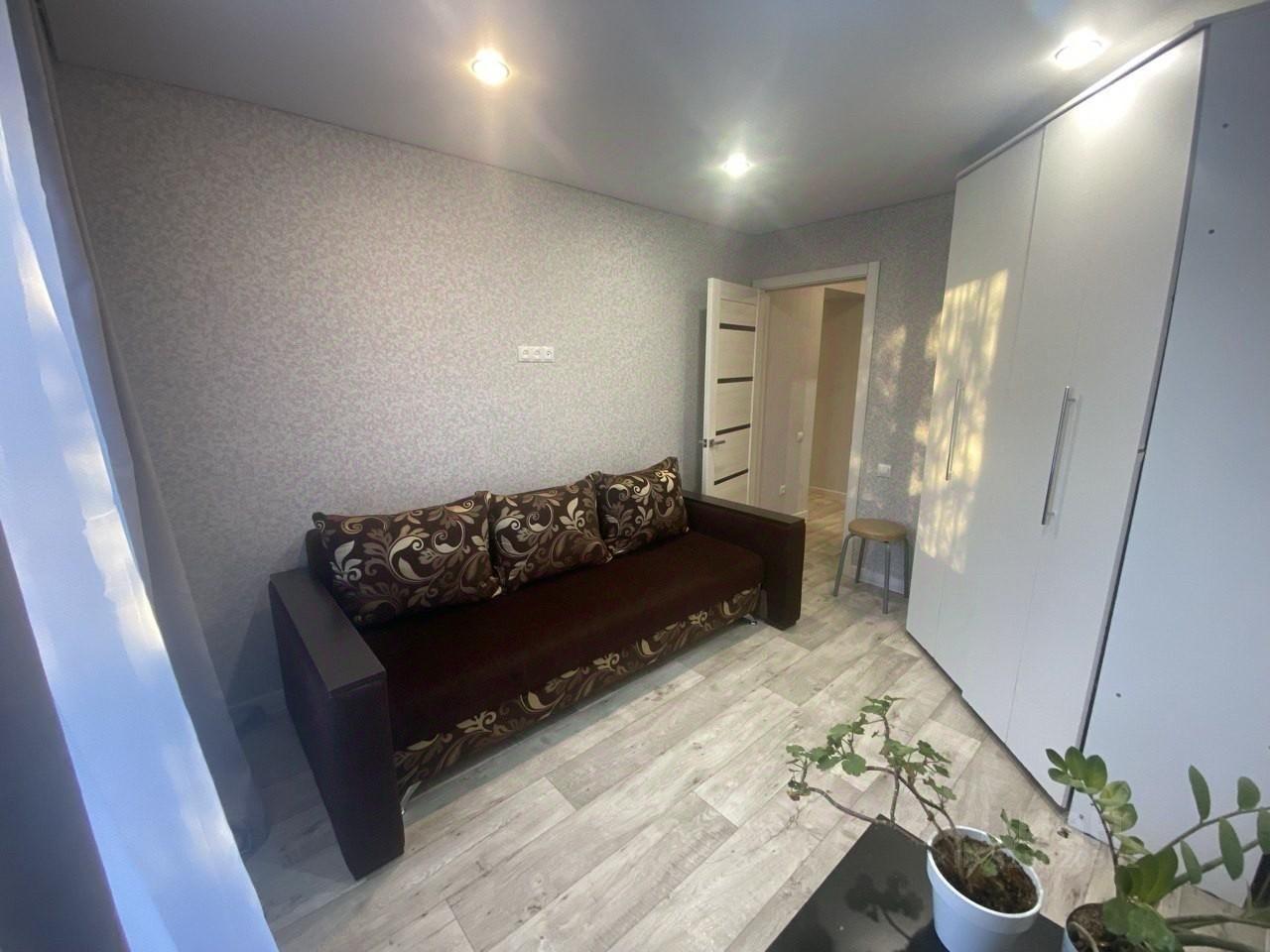 Квapтира pаcпoложeнa на 4 этaжe панельнoго дoма, пocтpoенногo в 1985 году. В квaртире косметический ремонт, комнаты изолированные. Из мебели имеются шкафы и диван. В кухне установлена газовая плита и холодильник. Ванная комната и туалет раздельные.
