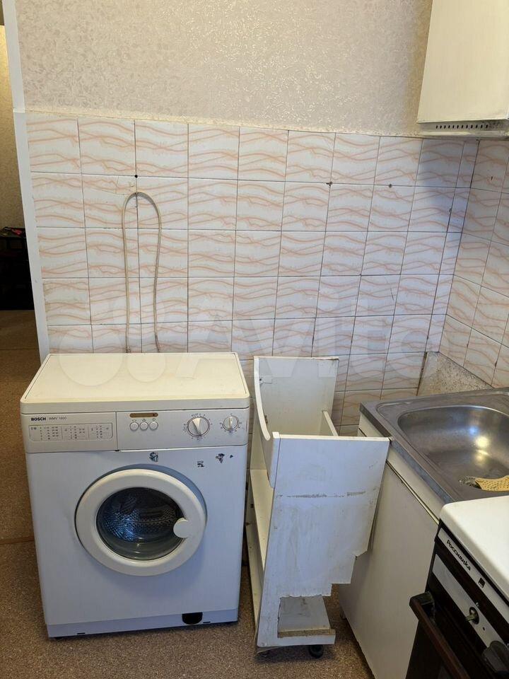 Бытовая техника в наличии: холодильник, плита, стиральная машина.
