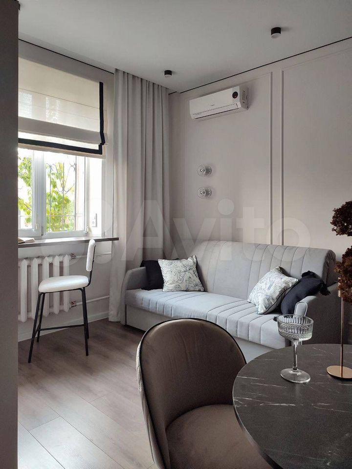 В квартире сделан современный евроремонт. Приятная обстановка: мебель на кухне и в комнате, что позволяет сразу заехать без дополнительных трат. К вашим услугам вся необходимая техника: кондиционер, холодильник, телевизор и стиральная машина. Санузел совмещённый, оборудован ванной. Есть балкон, окна выходят на улицу.
