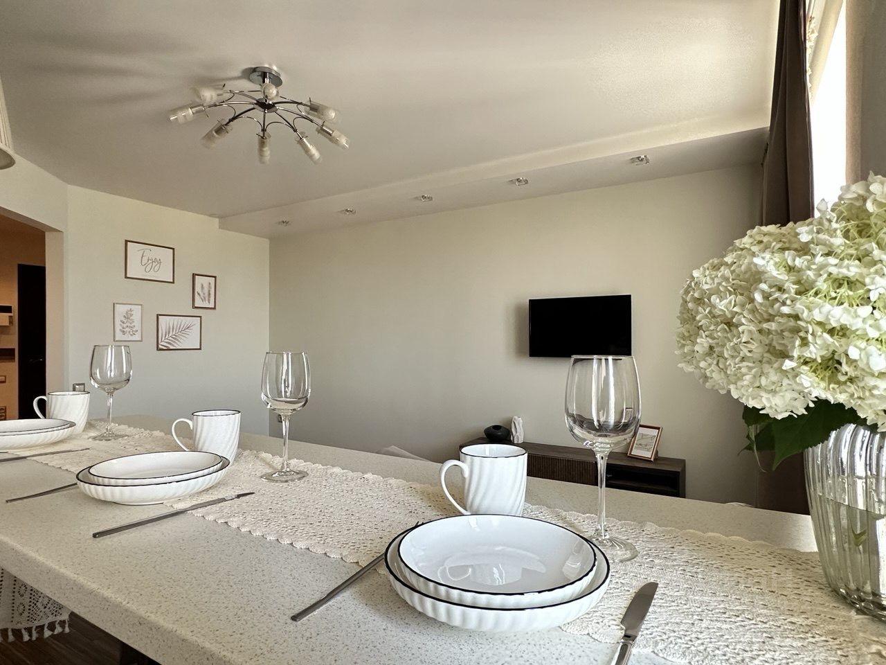 В уютных апартаментах всё необходимое для долгосрочного проживания: ТВ, холодильник, просторная ванная с индивидуальными гигиеническими наборами, микроволновая печь, набор посуды, кондиционер. Бесплатная ежедневная уборка и парковка для Вашего автомобиля. Никаких скрытых платежей, только расходы на электроэнергию!