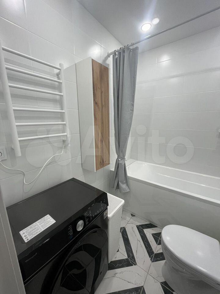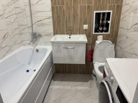 Ванная комната совмещенная, оснащена современной сантехникой и стиральной машиной. Есть счетчики на воду и отопление. В ванной комнате теплый пол.