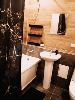 Внутри вас ждет удобная мебель: диван, обеденный стол и стулья,шкаф для хранения одежды,сушилка,гладильная доска,утюг.Из техники имеется холодильник ,микроволновая печь,электрическая печь с духовкой и стиральная машина,вместительный холодильник,Эл.чайник и все необходимое для кухни(кастрюли/тарелки)Для вашего комфорта установлен телевизор с смарт тв, Совмещенный санузел оформлен в темных тонах с мраморной плиткой, что добавляет уюта и современности.Большая ванная.В ванной установлен теплый пол