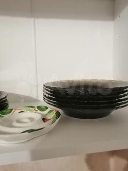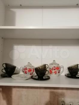 Квартира студия . Встроенная кухня холодильник телевизор шкаф купе диван стол стулья камод посуда з...