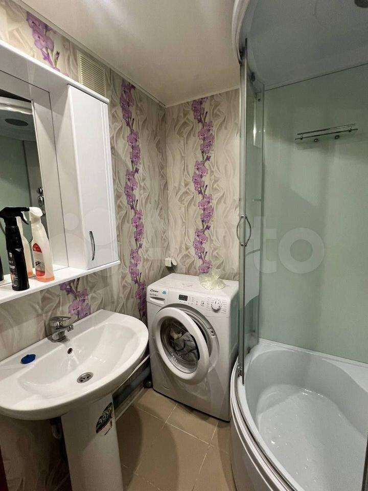 Совмещенный санузел с полноценной ванной выполнен в светлых тонах с качественной сантехникой и современной отделкой. Стиральная машинка с функцией сушки. В прихожей и комнате предусмотрены удобные шкафы для хранения вещей. Из окон открывается вид на тихий двор с открытой парковкой.